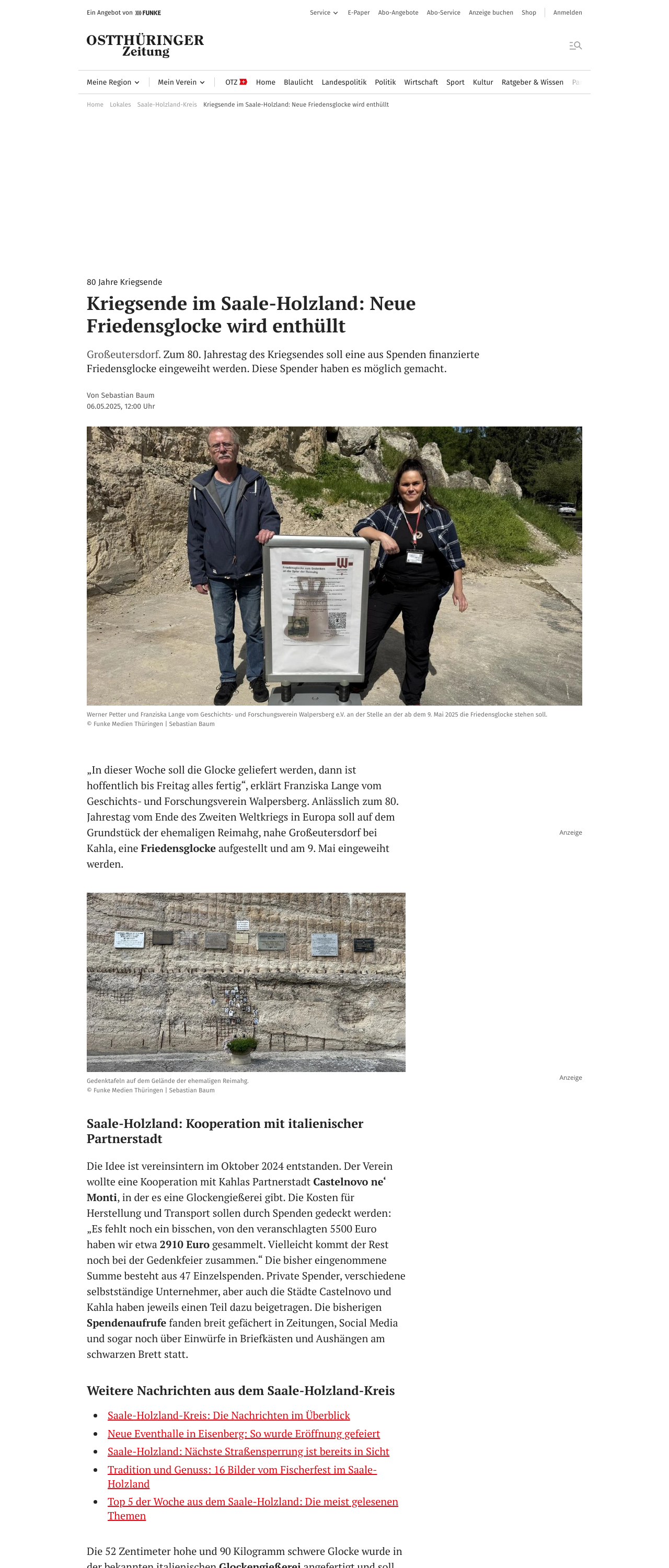 Der Geschichts- und Forschungsverein Walpersberg e. V. und der Internationale Verein Kahla e. V. laden vom 22. bis 26. April 2026 zu einer gemeinsamen Bildungsfahrt in unsere italienische Partnerstadt Castelnovo ne’ Monti ein. Die Reise verbindet historische Lernorte, europäische Begegnung und die beeindruckende Landschaft des Apennins.